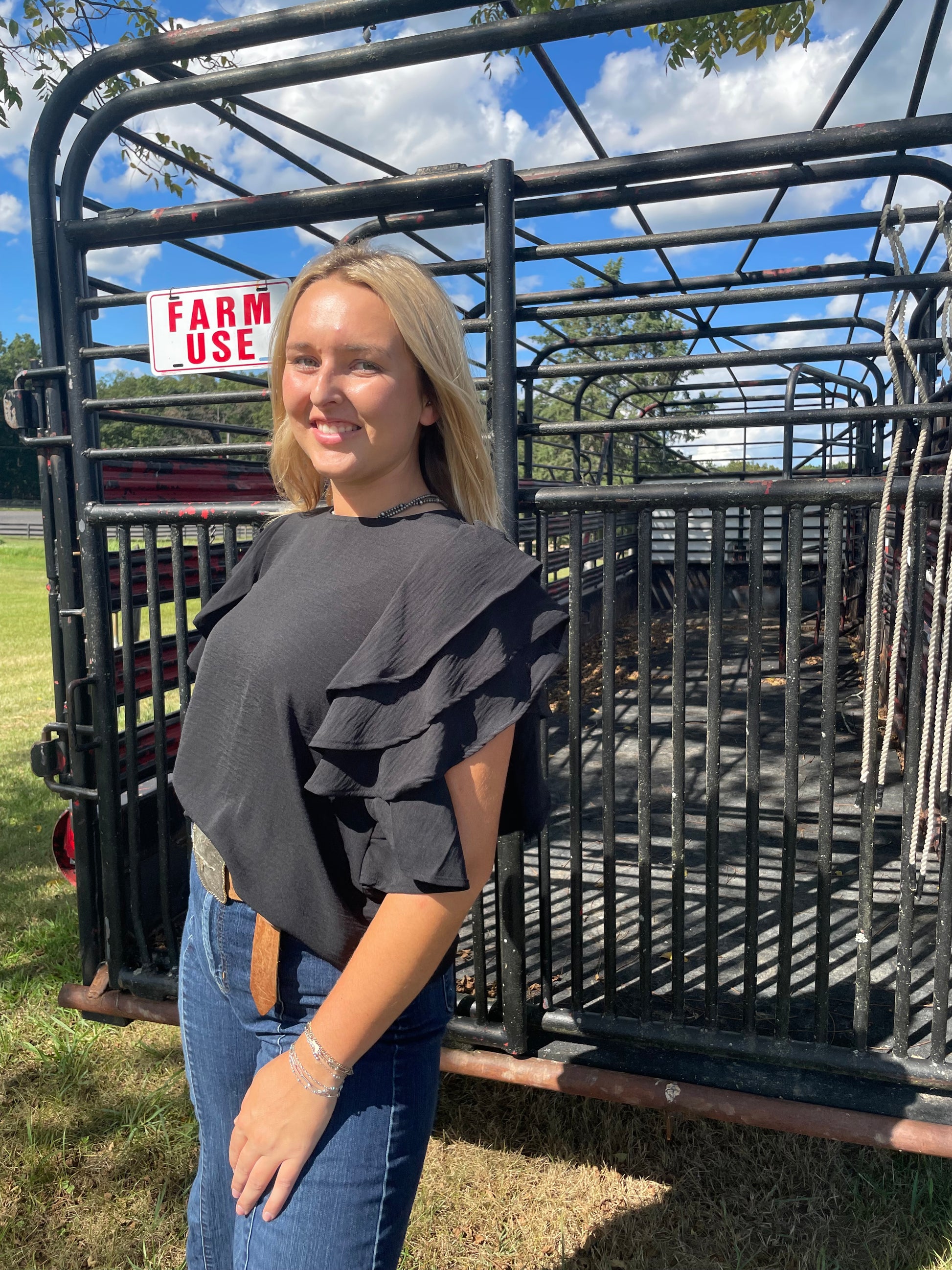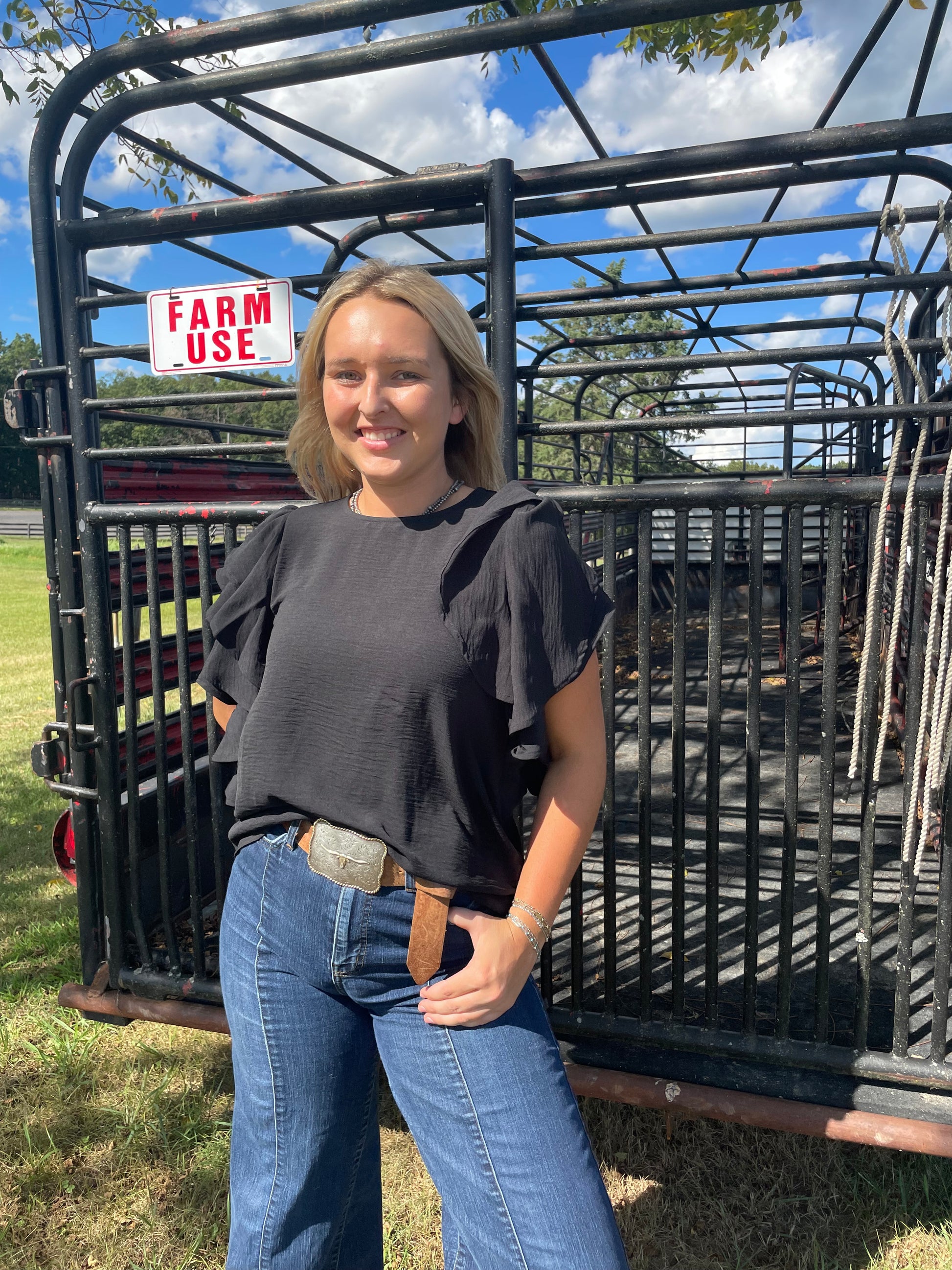 Add a touch of timeless elegance to your wardrobe with the Shay Ruffle Sleeve Top. Its classic design is a staple in any wardrobe and can be styled in multiple ways for a versatile look. Elevate your style game with this must-have piece.