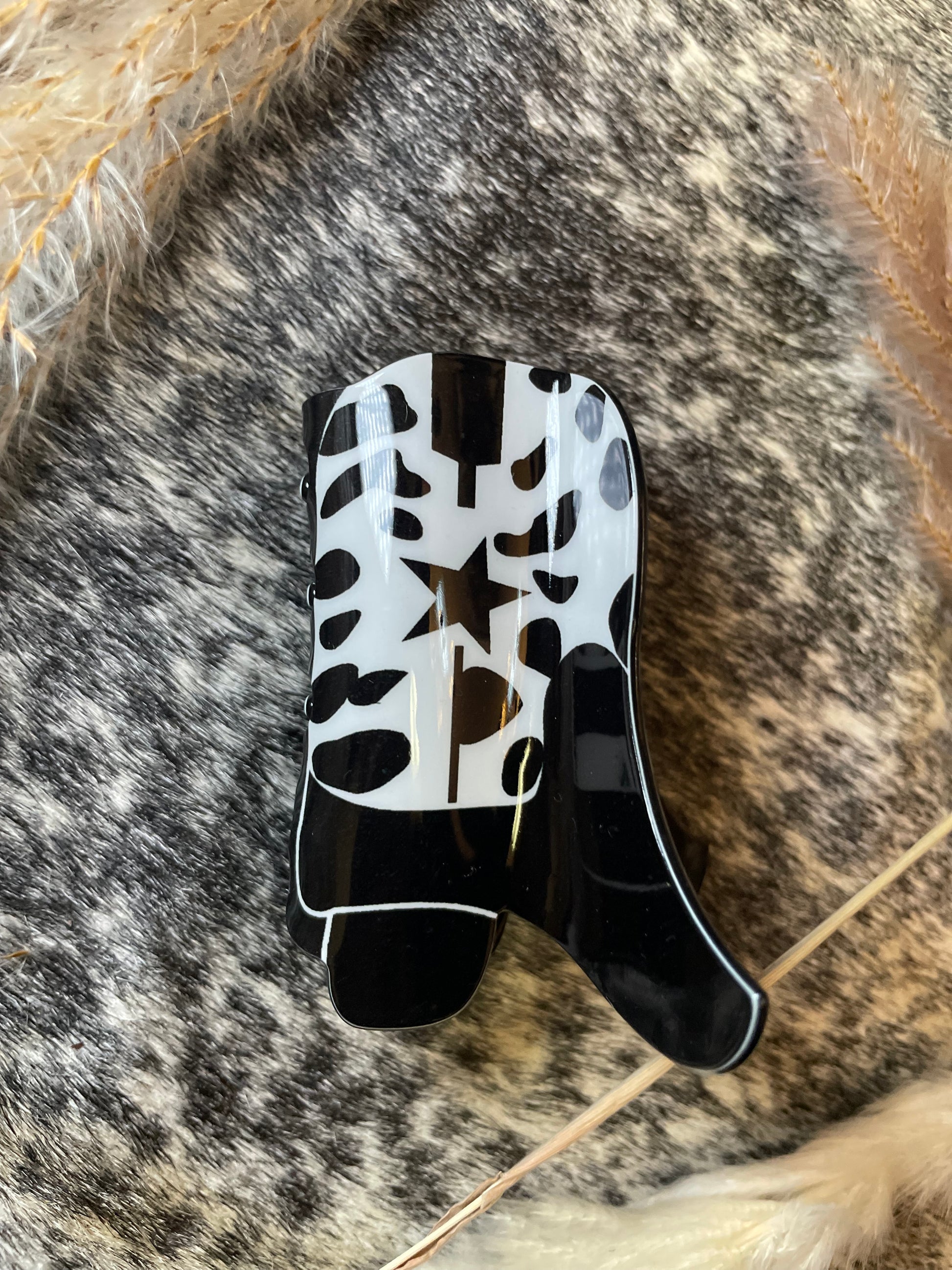 Elevate your western accessory game with our Novelty Cowboy Boot Claw Clip. This statement piece is a cute and unique gift for any cowboy or cowgirl in your life. Its stylish design adds a touch of western flair to any outfit. Show off your love for all things cowboy with this one-of-a-kind claw clip.